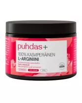 Puhdas+ L-Arginiini on puhdas ja laadukas aminohappovalmiste, joka sisältää ainoastaan fermentoimalla valmistettua L-arginiinia. Tuote on täysin kasviperäinen, maustamaton ja väriaineeton, joten se sopii erityisen hyvin herkkävatsaisille sekä niille, jotka haluavat välttää turhia lisäaineita. Arginiini on tärkeä aminohappo, jota elimistö käyttää muun muassa verenkierron ja suorituskyvyn tukemiseen.